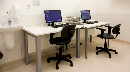 Através de sistema digital, conciliamos majoritariamente todas as informações relacionadas aos cuidados com os pacientes entre os setores e os diferentes profissionais que realizam os atendimentos.